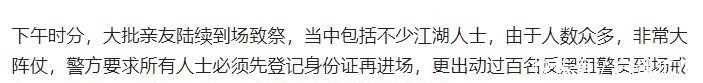 他还特别强调,当天陆陆续续有四千到五千左右的江湖人士到场进行悼念。